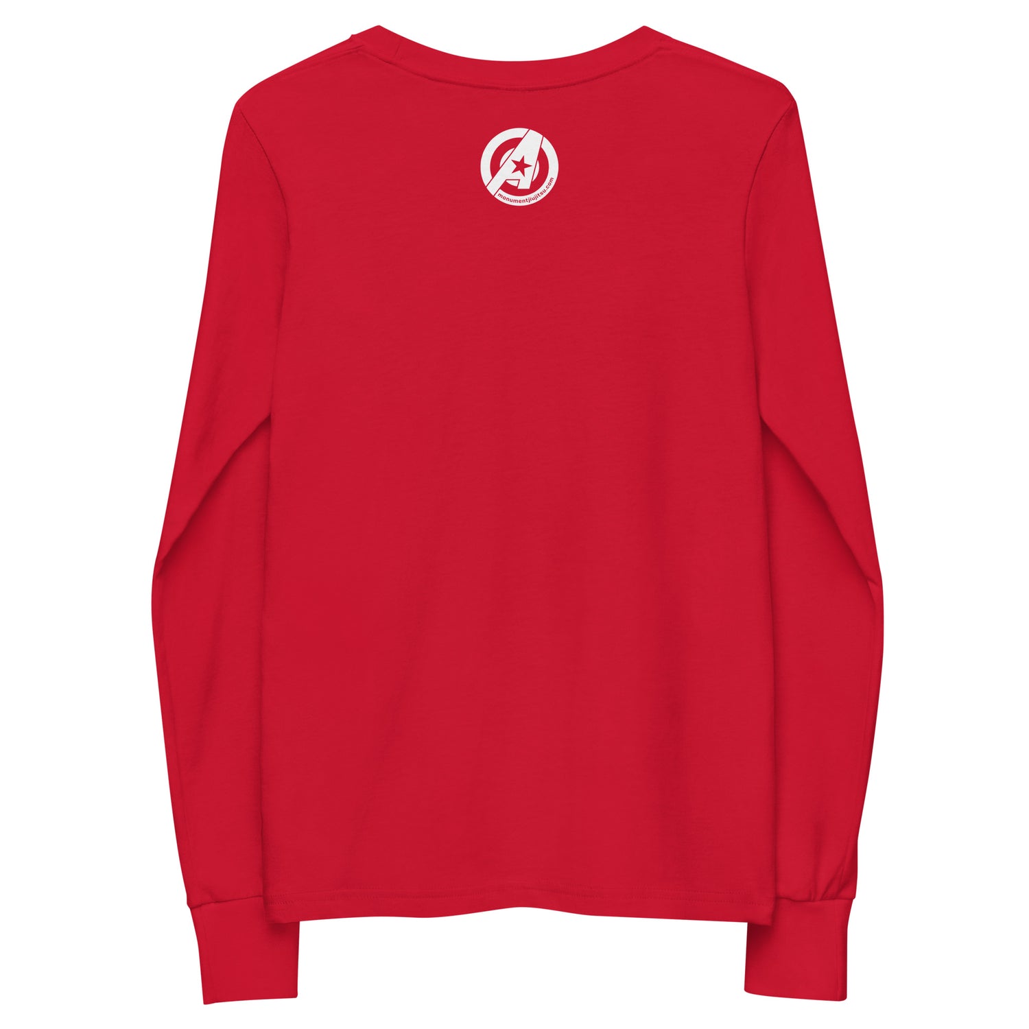 The Youth Long Sleeve Shirt is made of Airlume combed and ringspun cotton, which is known for its softness and durability. The shirt has a regular fit, classic crew neck, and ribbed cuff.
